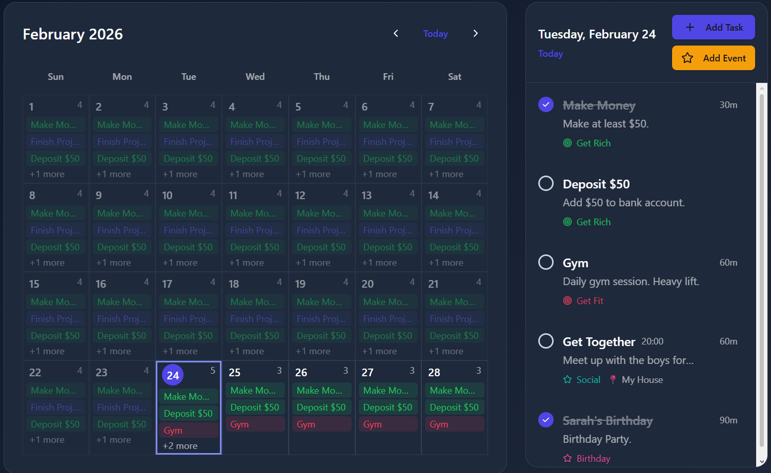 Calendar integration for all tasks and events
